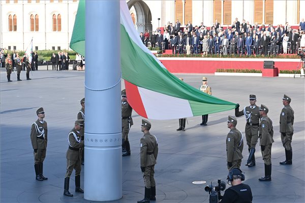 2024.03.15 09:56MTIA lobogót Sulyok Tamás köztársasági elnök és Kövér László, az Országgyűlés elnöke jelenlétében, a Himnusz hangjaira a honvédség díszegysége vonta fel az Országház előtt. Az eseményen közreműködött a központi katonazenekar és a lovas díszegység.