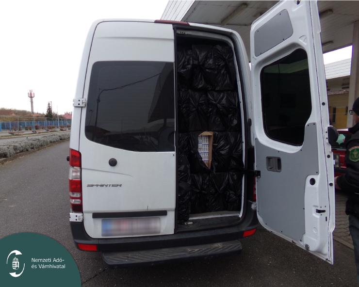 A mikrobusz rakterében fekete fóliába csomagolt kartondobozokban 141 500 doboz zárjegy nélküli, több mint negyedmilliárd forint értékű ukrán cigarettát találtak.